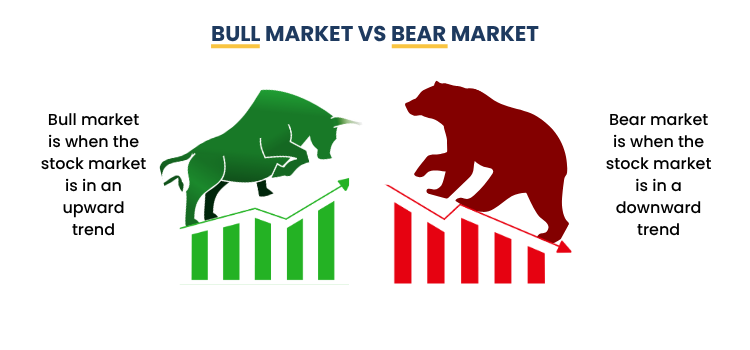 On the other hand, a “bear market” is the exact opposite – this is when stock market is moving downwards. A perfect example is the coronavirus era of 2020; the entire world came to a halt, there was economic uncertainty everywhere, and the stock market tanked.