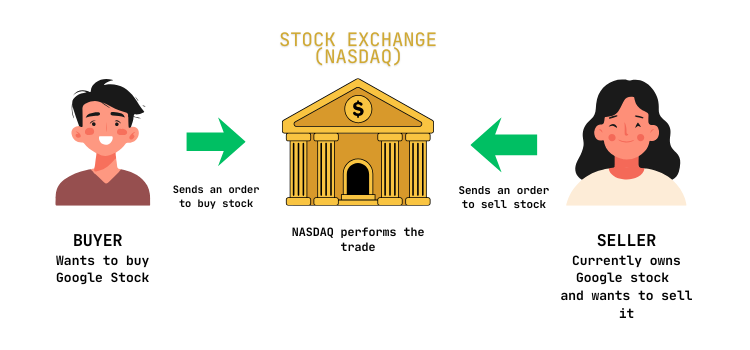 Fig 1.1 — A simplified illustration of how buying and selling stocks works